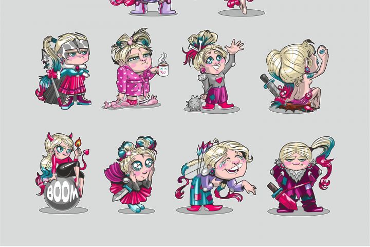 Создать набор стикеров, где девушка-амазонка попадает в смешные, жизненные ситуации. Главное – юмор, харизма и узнаваемость!
