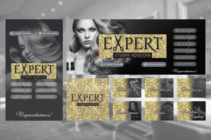 Для оформления социальных сетей салона красоты EXPERT я разработала комплексный дизайн, включающий: