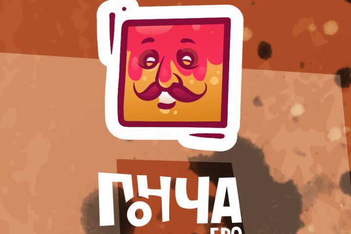 Итогом стал логотип в виде довольного квадратного такого бро с усами. И написание фирменным названия "Пончабро"