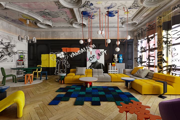 Яркий и необычный проект, с использованием инсталляций, фресок и скульптур, на стыке loft и современной классики. Каждая деталь интерьера отражает идею свободы и безграничной, нестандартной гармонии. Открытое пространство и естественное освещение - наполняют квартиру воздухом и светом, а акценты и формы делают содержание насыщенным и играющим.