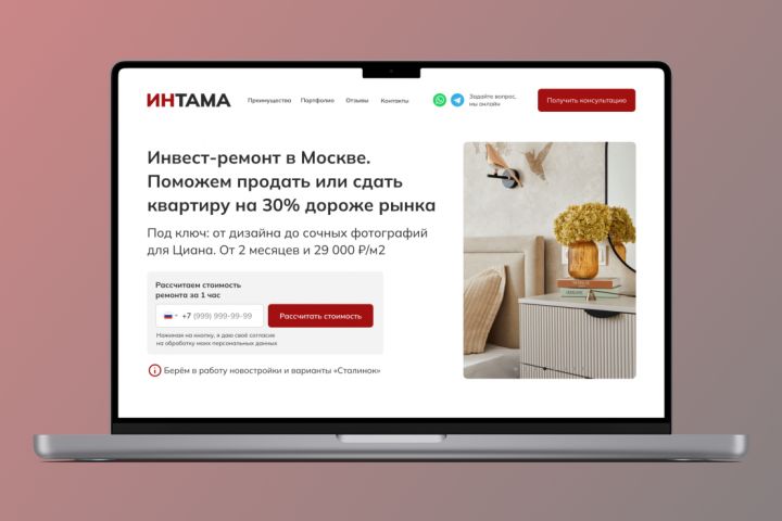Разработать продающий лендинг для компании, которая занимается инвестиционным ремонтом и флиппингом.