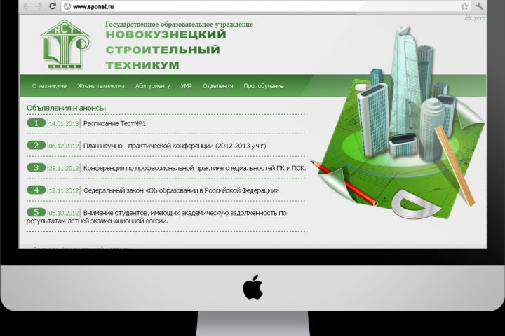 Задача: выполнить редизайн и изменить структуру корпоративного сайта для ФГОУ СПО Новокузнецкий строительный техникум.