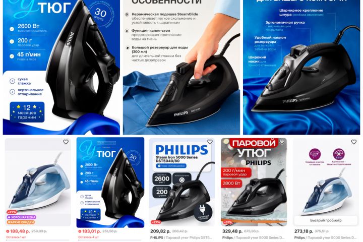 💨 Утюг с паровым ударом — карточка для Wildberries.