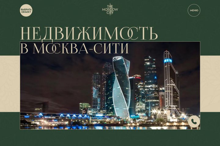 Моей задачей было создать атмосферу изысканности и богатства. Агентство продает элитную недвижимость и нужно, чтобы сайт вызывал доверие и желание приобрести объект в Москва-Сити.