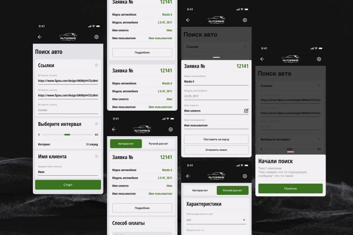 - Поиск авто — ввод ссылок с параметрами поиска, задание интервала проверки (5–60 мин), привязка имени клиента, отправка уведомлений в Telegram.