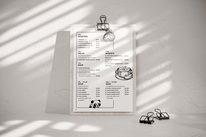 В результате получилось стильное и понятное меню, которое передаёт атмосферу азиатского кафе, выгодно выделяет каждое блюдо и облегчает выбор для гостей, повышая их интерес и желание сделать заказ.