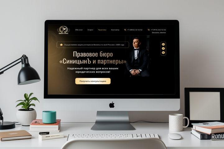 Клиент - правовое бюро "СиницынЪ и партнеры" - обратился с задачей создать представительский сайт для привлечения новых клиентов и демонстрации профессиональной экспертизы. Основные цели: повысить доверие к юридическим услугам, четко представить спектр услуг, обеспечить удобное взаимодействие с потенциальными клиентами через формы обратной связи. Требовалось создать солидный, статусный дизайн, который подчеркнет серьезность и надежность юридического бюро.