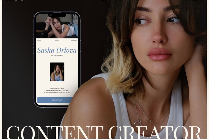 В экспертном сайте контент-мейкера важна динамичная подача работ. Именно потому в разделе с кейсами я предусмотрела интерактивную карусель, которая позволяет сразу погрузить пользователя в стиль съемок, не перегружая при этом страницу. Структура построена таким образом, чтобы легко захватить внимание посетителя и направить его к целевому действию — заказу услуг эксперта. Простая навигация и четкая структура помогают быстро найти нужную информацию и сделать взаимодействие пользователя удобным.