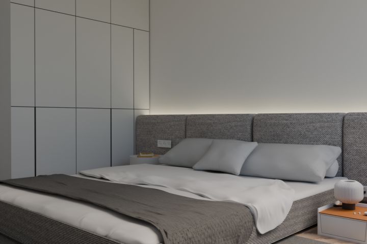 Визулизацуия комнаты в белых тонах со стилем минимализма