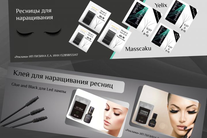 Создала современный, стильный дизайн для рекламных баннеров на основе полученной информации от заказчиков об их магазинах, и их пожеланий.