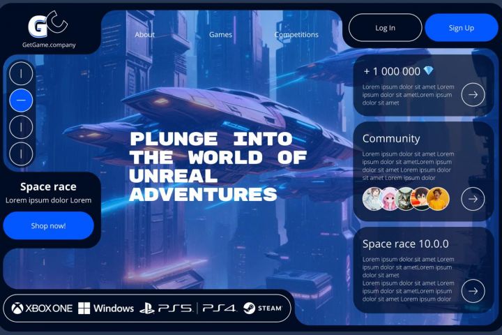 Разработали лендинг для презентации космической аркады «Space Race». Главная задача — передать динамику, атмосферу и визуальную эстетику игры, а также побудить пользователя зарегистрироваться или перейти к покупке.