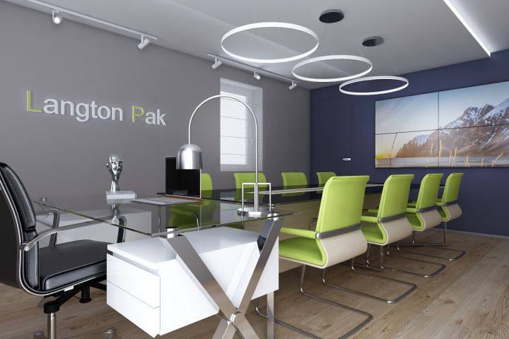 Задача была сделать красивый современный дизайн проект офисных помещений с использованием корпоративного цвета на стенах и полу, а также логотипа в качестве акцента в дизайне.