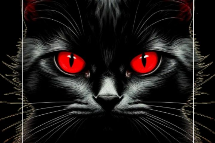 Аватарка черного кота с красными глазами и кровавым фоном сделанная с помощью (ии) искусственного интеллекта с помощью редактирования