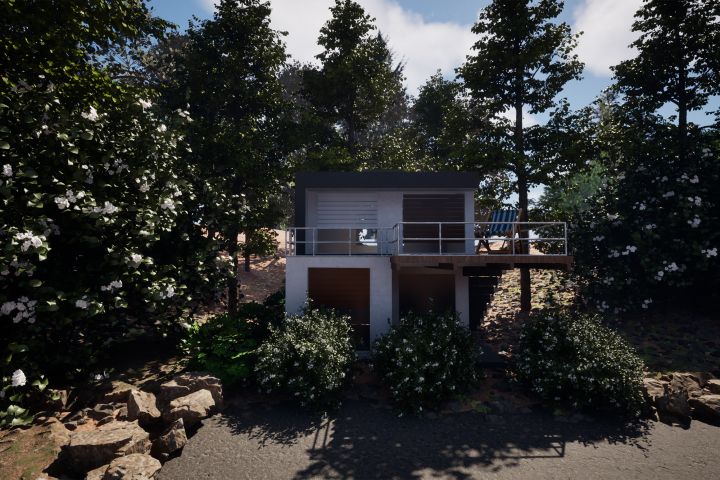 Моделирование и визуализация дома и окружения по предоставленному эскизу.