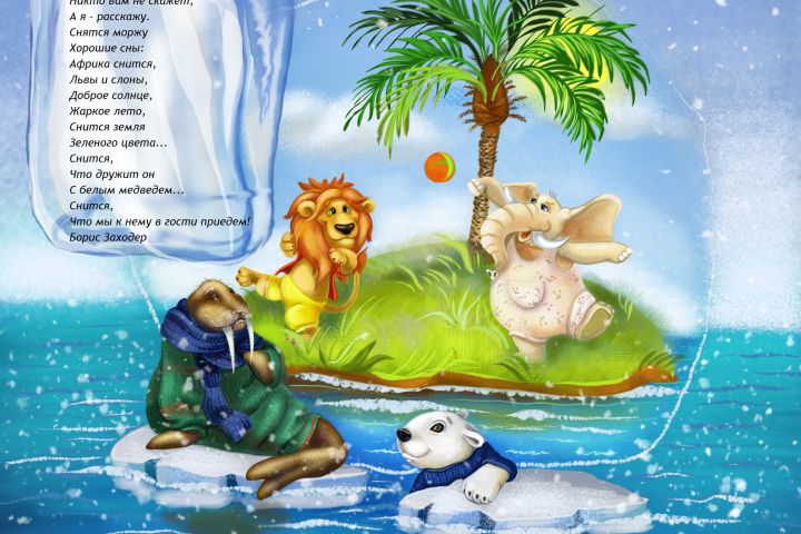 Задача стояла сделать яркие иллюстрации с милыми животными, чтобы детям было интересно их разглядывать.