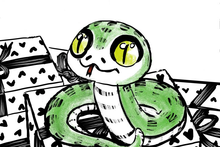 Нужно было создать лаконичную новогоднюю открытку на год Змеи.