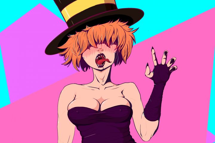- Создание концепта персонажа с акцентом на яркие цвета и ретро-стиль: высокий цилиндр с жёлтой полосой, подчёркивающий культовую моду 80-х, и современный костюм, подчёркивающий фигуру.
