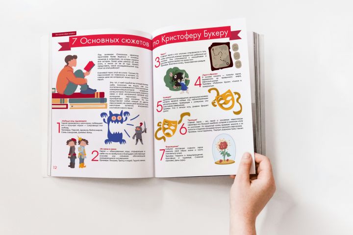 Разработана стильная инфографика, визуализирующая теорию семи основных сюжетов Кристофера Букера. Работа выполнена в рамках учебного задания.Проект демонстрирует навыки преобразования сложного текстового материала в эффективную визуальную коммуникацию, умение работать с композицией и типографикой в информационном дизайне.