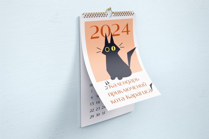 Разработан креативный дизайн тематического календаря с котом Карагисом (создан автором) в главной роли. Проект выполнен в рамках учебного задания. Проект демонстрирует навыки работы с календарной версткой, создание единого визуального стиля и умение разрабатывать тематические дизайнерские решения с персонажем.