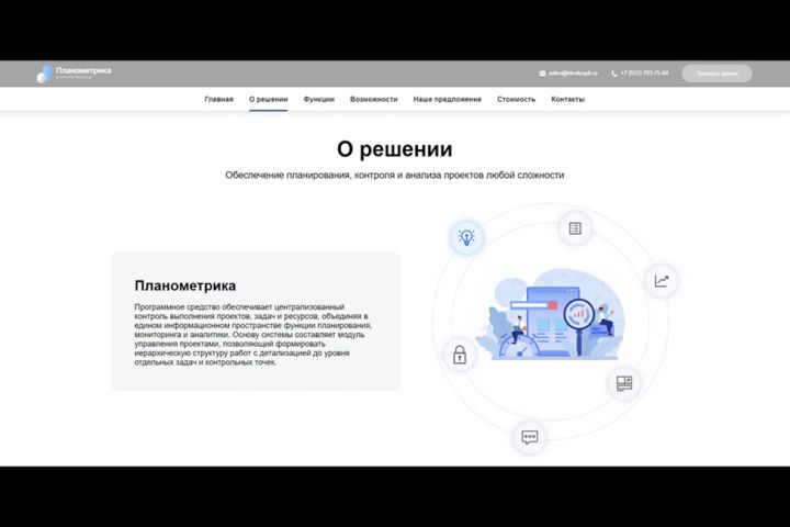 В результате проекта был разработан и готов к развертыванию современный, высокопроизводительный и функциональный лендинговый сайт для продукта "Планометрика".