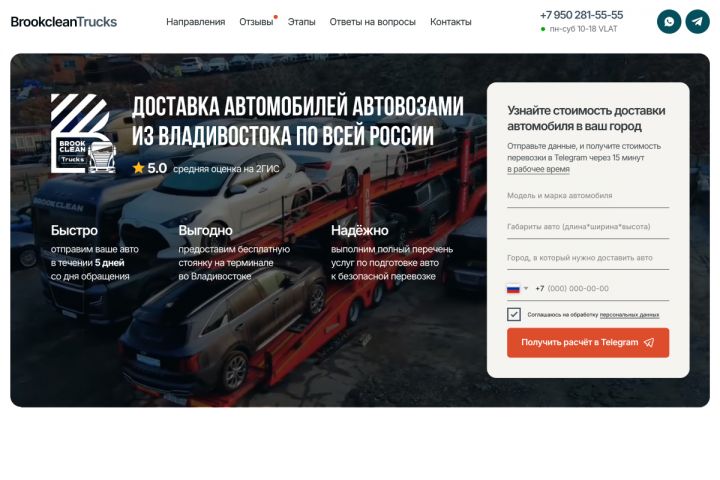 Задача создать конверсионный лендинг для получения заявок на бесплатный расчет стоимости доставки и подписки на ТГ канал через Яндекс Директ