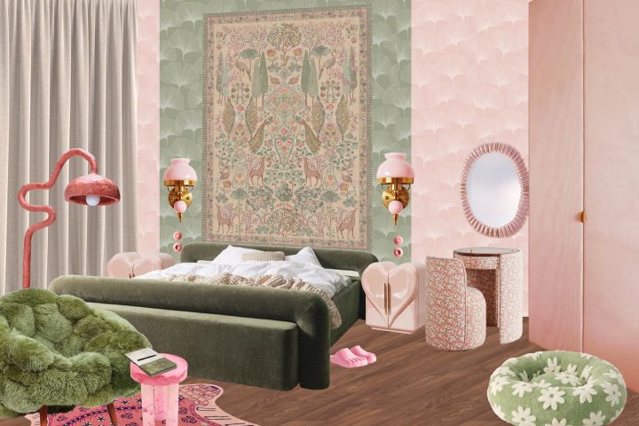 Задача была в том, чтобы создать "розовую" спальню. Все элементы данного коллажа были найдены на просторах "Пинтерест" Photoshop