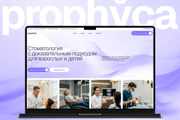 Сайт для стоматологии, которая работает по принципам доказательной медицины и использует новейшие технологии. Главная задача сайта — быстро записать пациента на прием, а также продемонстрировать спектр услуг клиники и ее ценности.