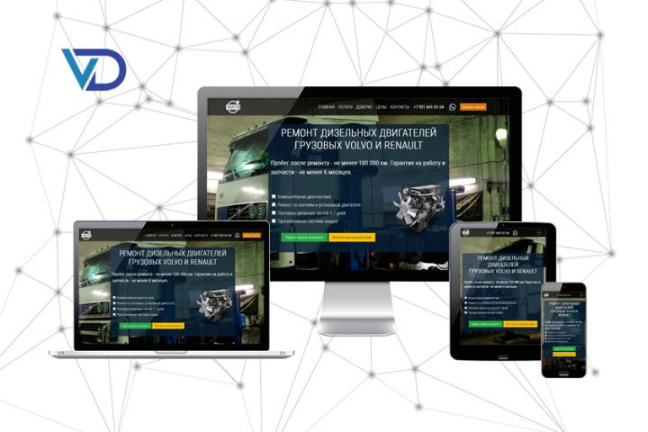 Разработка лендинга для компании, занимающейся ремонтом дизельных двигателей. По требованию Заказчика, лендинг должен наглядно представлять услуги компании, демонстрировать профессионализм команды, подчеркивать преимущества перед конкурентами и мотивировать потенциальных клиентов обращаться именно сюда. Страница лендинга должна включать: приветствие, перечень услуг, информацию для повышения доверия к компании, стоимость услуг, контакты и форму обратной связи. Особое внимание Заказчик обратил на адаптивность дизайна и простоту навигации.