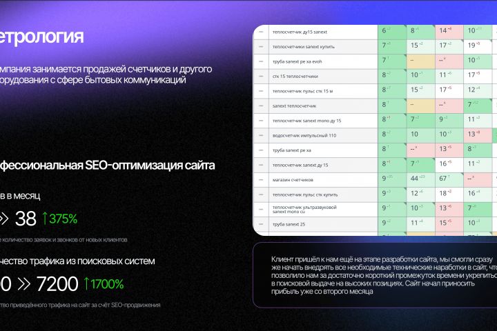 Количество заявок выросло с 8 до 38 в месяц, а трафик увеличился с 400 до 7200 посетителей