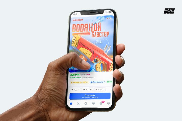 Для победы в визуальной среде онлайн-маркетплейсов (или: в конкурентной визуальной среде) требовалось использовать яркие цвета, динамичные элементы и слегка хаотичную, но при этом сохраняющую логичную иерархию, композицию.