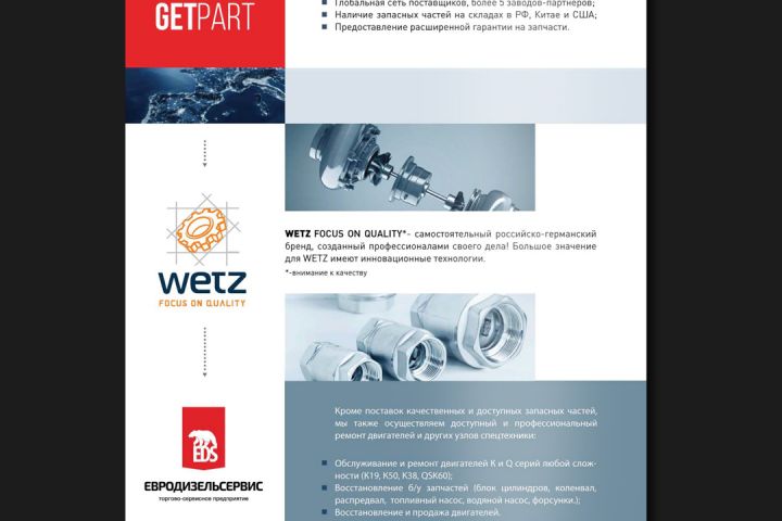 Листовка для промышленного предприятия по собственному производству и продажи запчастей. Макет был подготовлен в печать.