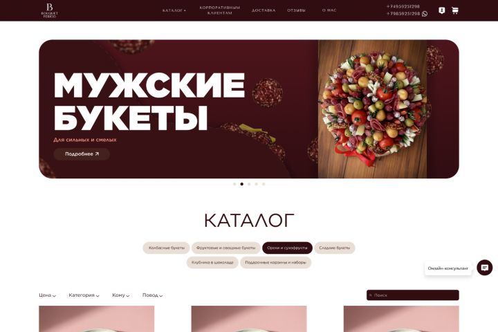 Учитывая специфику съедобных букетов, мы создали современный и эстетичный сайт.