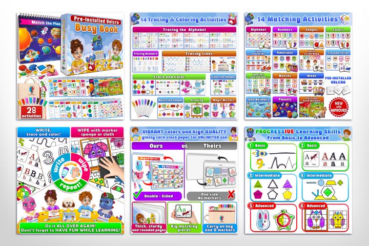 Дизайн карточек товара для Амазон - детская развивающая книга Busy Book от Curious to Learn