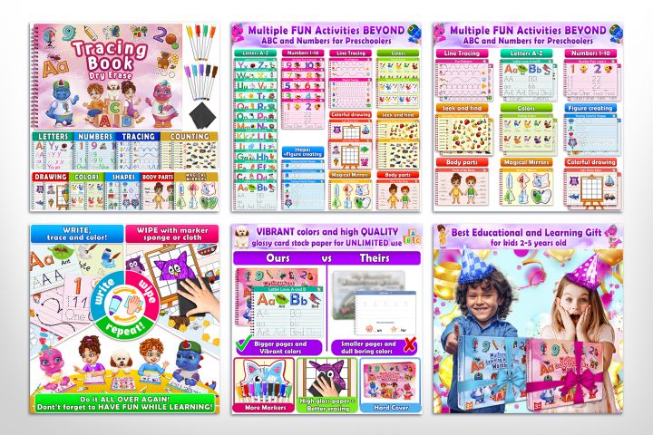 Дизайн карточек товара для Амазон - детская развивающая книга Tacing Book от Curious to Learn