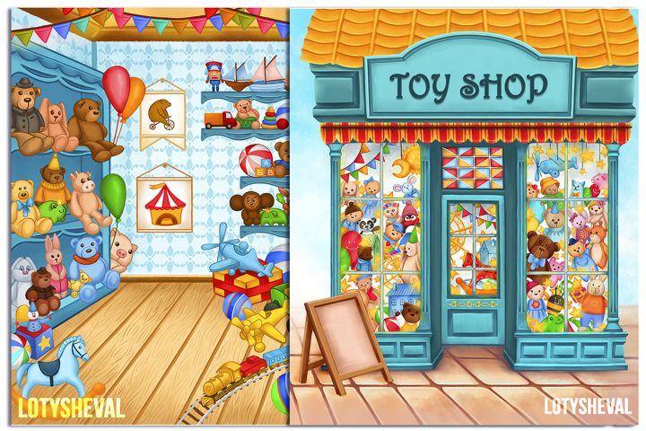 Иллюстрации для детского фотоальбома Тема альбома - магазин игрушек