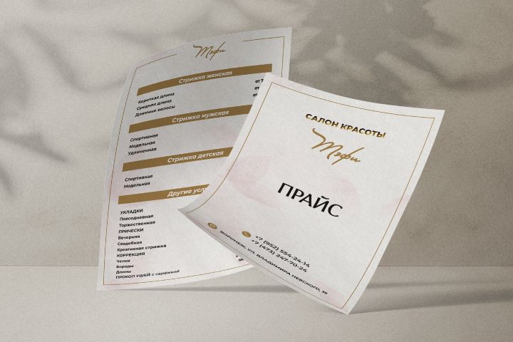 Заказчица обратилась с задачей: создать дизайн прайс-листа салона красоты "Тэфи". Который бы подходил под логотип и цветовую гамму салона.