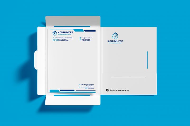 Основной задачей было создание дизайна бланка, который бы подходил по оформлению к логотипу и отражал атмосферу чистоты компании "Клинингер"