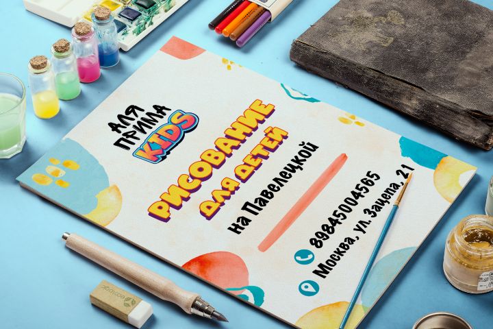 Представители детской художественной школы "Аля Прима" обратились за созданием листовки для детской художественной школы "Аля Прима". Листовка должна бытьвыполнена в ярком и красочном стиле, что привлекало бы внимание и создавало позитивное впечатление.