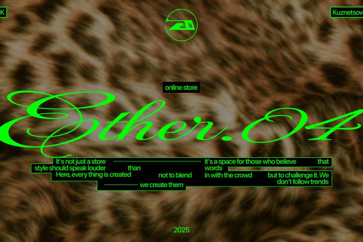 Было необходимо создать сайт, который визуально воплощает смелый и инновационный дух бренда Ether.04, позиционируя его как выбор для трендсеттеров. Ключевая задача — достичь идеального баланса между радикальным, экспериментальным визуальным самовыражением и безупречной, интуитивно понятной функциональностью. Платформа должна не просто шокировать креативом, а обеспечивать комфортное и эффективное взаимодействие, где каждая деталь служит как эстетике, так и удобству пользователя.
