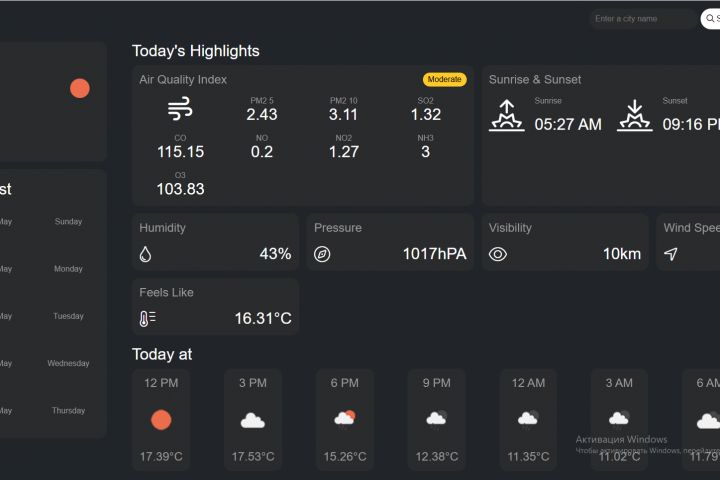 Я создал удобный веб-интерфейс, разместив на нём все необходимые данные о погоде, после чего подключил к нему Openweathermap API для получения информации.