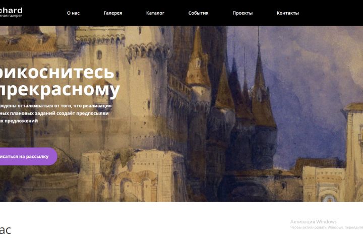 В итоге получился красивый сайт со списком картин известных художников, лентой событий в мире искусства и формой для обратной связи, которым заказчик был доволен.