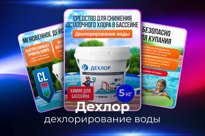 Инфографика для Дехлора — средства для снижение уровня хлора в бассейне.