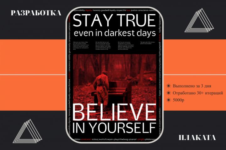 На этапе отрисовки плаката проект дорабатывается до полного идеала, в данной работе было более 30 итераций и вариантов перед тем как получить желаемый результат