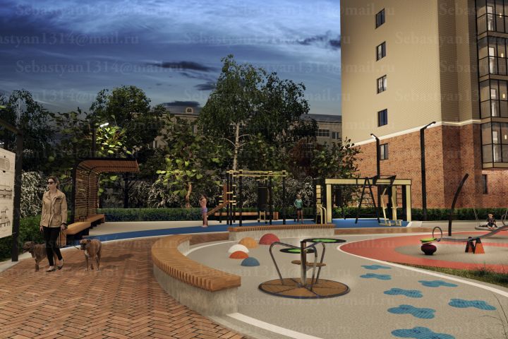 Создание ЖК , с проработкой дизайна территории - ночная версия