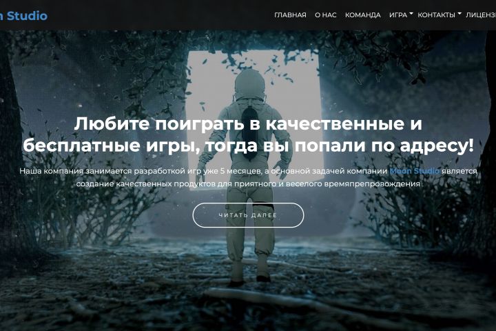 Получился презентационный сайт игровой студии, который: