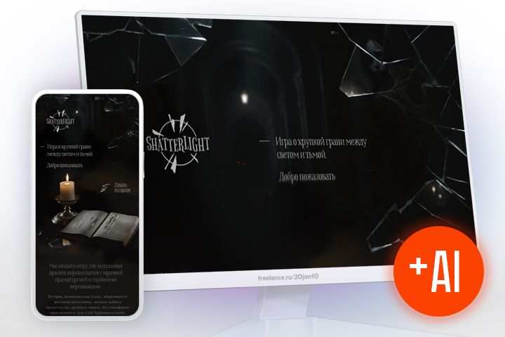 Разработка визуала и дизайн-макетов промо лендинга для компьютерной игры. Графика с применением ИИ: Stable Diffusion SDXL и инструментов Google AI