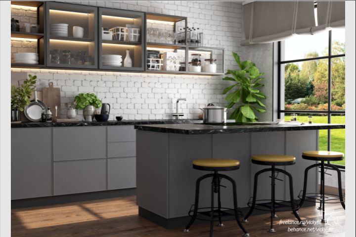 Дизайн и визуализация кухни для каталога производителя мебели.