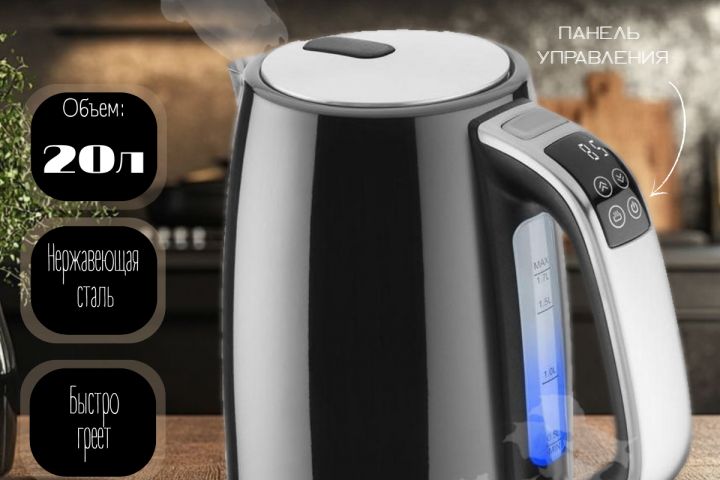 Для этого я добавила фон со столешницей, с теплыми оттенками на фоне. Из чайника я добавила выходящий пар, который еще добавила в угол карточки. Добавила немного плашек с информацией.