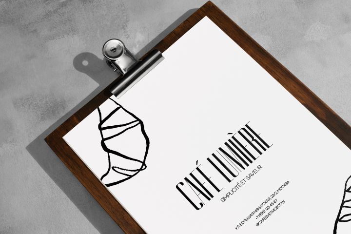 Этот проект был посвящен созданию элегантного и минималистичного двухстороннего меню для вымышленного московского кафе под названием "Кафе Свет". Клиент (в данном случае, я сам) хотел меню, которое бы отражало атмосферу заведения: уютное место с акцентом на качественные напитки и свежую выпечку, при этом сохраняя современный и изысканный стиль. Меню должно было быть легко читаемым, информативным и визуально привлекательным.
