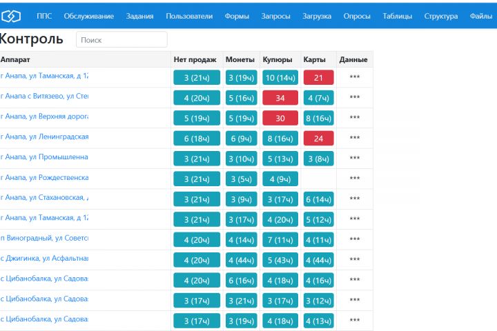 Занесли в систему около 80 аппаратов; загрузили каждому по два десятка настроек, сделали 2 инструмента для индикации состояния по 20 параметрам; сделали планировщик задач по обслуживанию аппаратов с возможностью изменения их параметров; сделали форму отчета по обслуживанию аппаратов с внесением показателей, фотоотчетов, рекомендаций.
